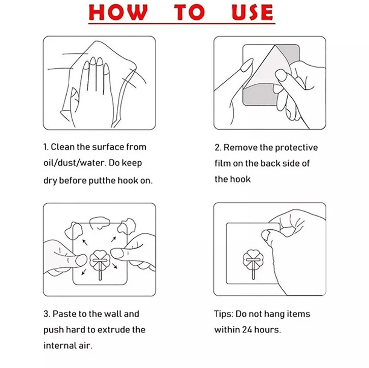 Just stick this self-adhesive hooks to the tiles of your kitchen and bathroom. They are useful for hanging towels, cooking utensils or bathroom accessories. They are easy to peel and stick to most surfaces including glass, plastic, metal and wooden.